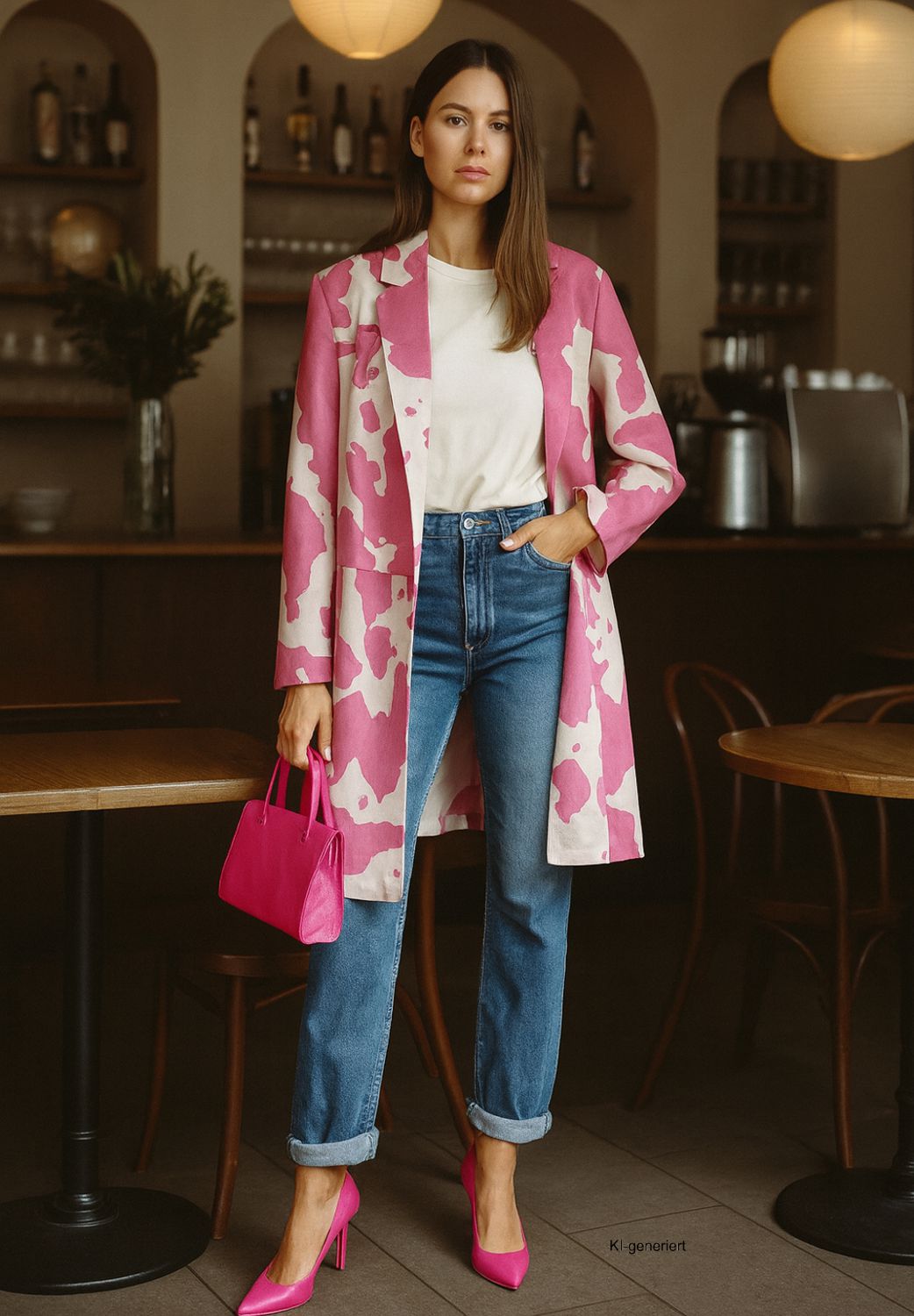 Ideal für den Übergang oder als stylischer Eyecatcher an kühleren Sommerabenden – ein Mantel, der gute Laune macht!