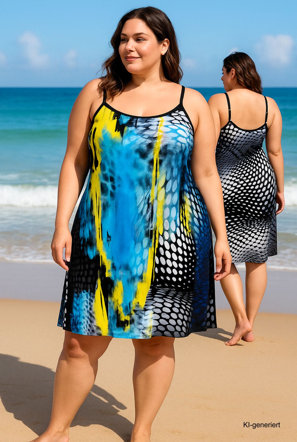 Die verstellbaren Spaghettiträger sorgen für eine individuelle Passform und hohen Tragekomfort. Durch den Stretchanteil sitzt das Kleid angenehm und schmeichelt der Figur – ideal für Alltag, Urlaub oder als luftiges Sommeroutfit.